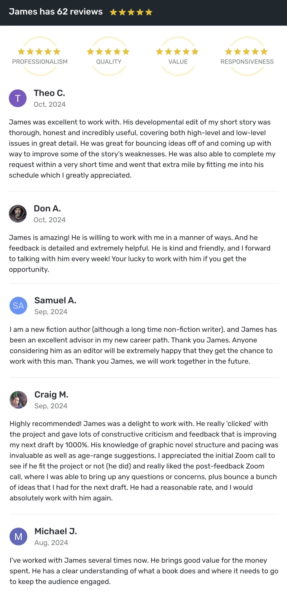As a professional fiction editor, I've edited 100s of novels, novellas, and short stories, not to mention all the graphic novels and comics I work on regularly. I work with first-time writers and those who've been publishing for years.